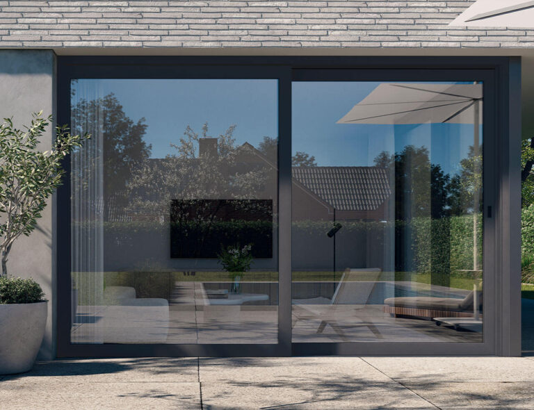 Architecture résolument moderne offrant un maximum de surface vitrée grâce à ses profilés fins. La fenêtre coulissante en PVC Premidoor 76 de Kömmerling vous assure un maximum de visibilité, d’isolation thermique et acoustique et une parfaite sécurité.